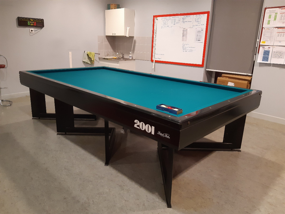 Le mardi 27 septembre, le cinquième billard du club est arrivé. Un grand ! Un billard de match ! Un 3 mètres 10 quoi ! Dans la foulée, nos quatre billards demi-match de 2,80m ont revêtu un bel habit tout neuf. Bravo à l'équipe de gros bras, à 300Kg la dalle d'ardoise, c'est quelque chose à remuer ! Allez-y, faites des points !
